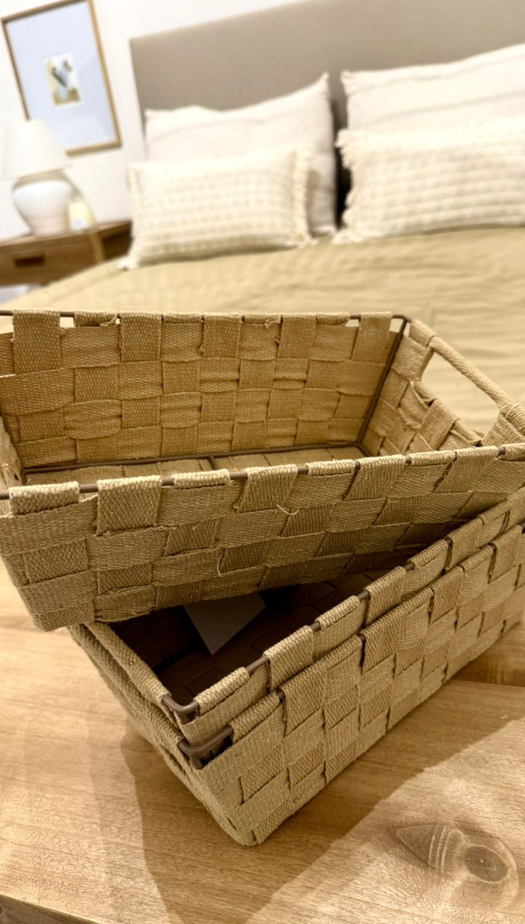 Cesto organizador rectangular beige. Medidas: 30 cm x 17 cm x 11 cm.